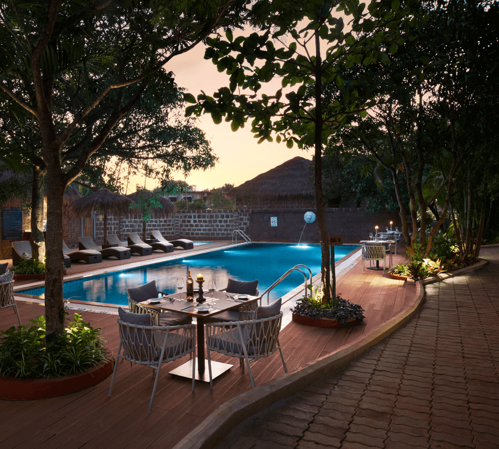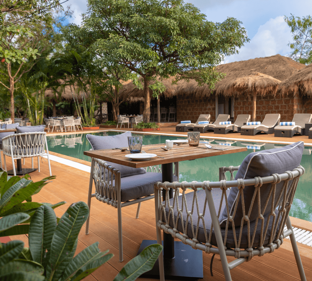 Your meals are served at Khambir, the resort’s signature restaurant, where fresh local ingredients, coastal flavours and warm hospitality come together. Expect wholesome breakfasts, comforting meals, refreshing high tea, and serene sunset moments overlooking the pool and greenery.